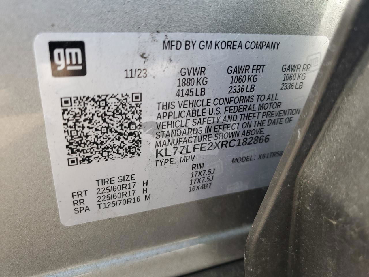• VIN: KL77LFE2XRC182866