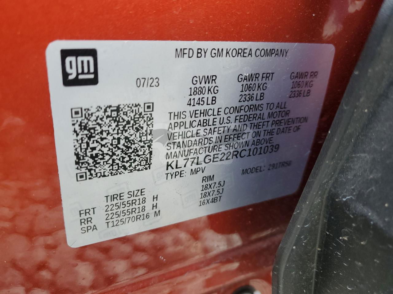 • VIN: KL77LGE22RC101039