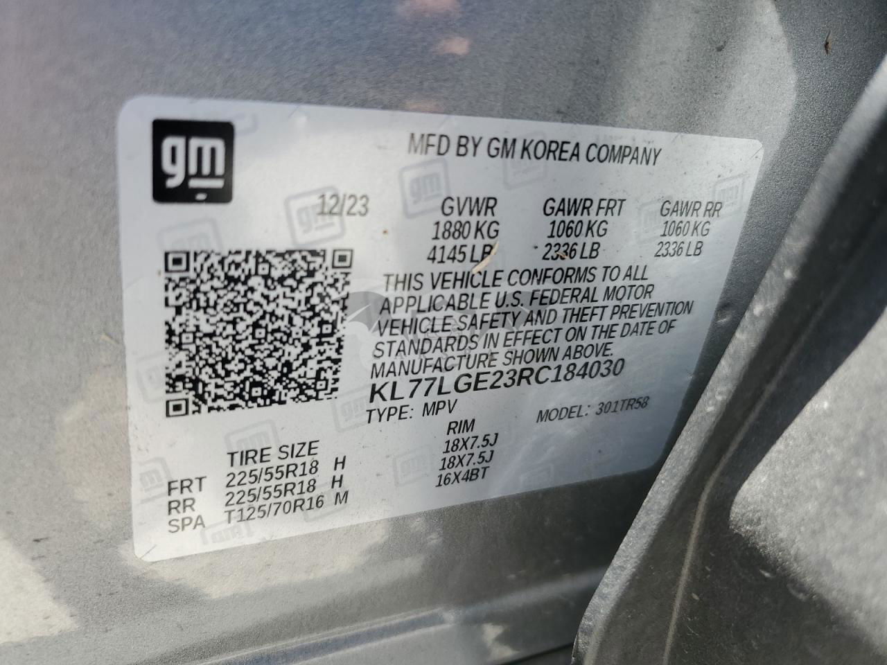 • VIN: KL77LGE23RC184030