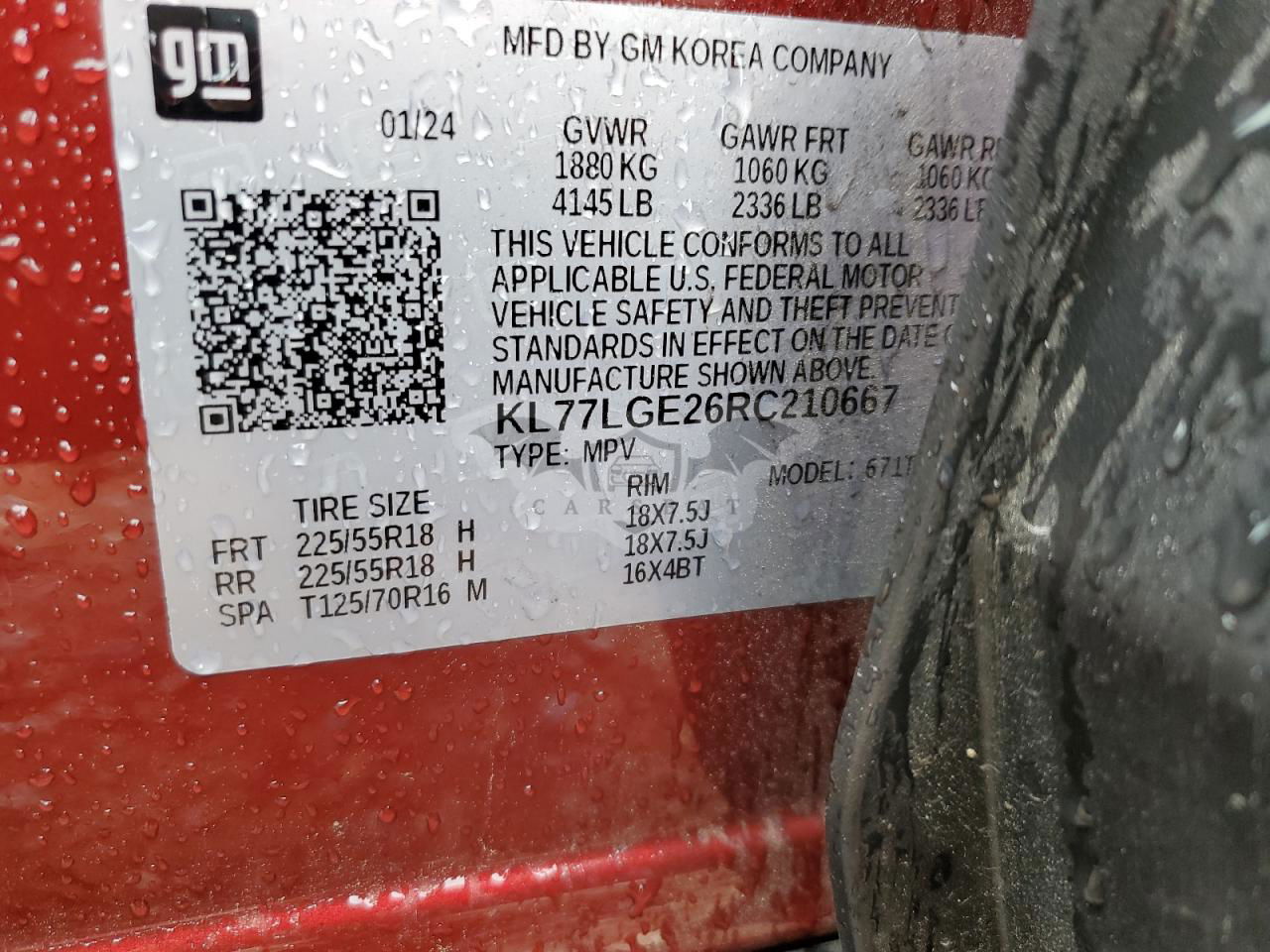 • VIN: KL77LGE26RC210667