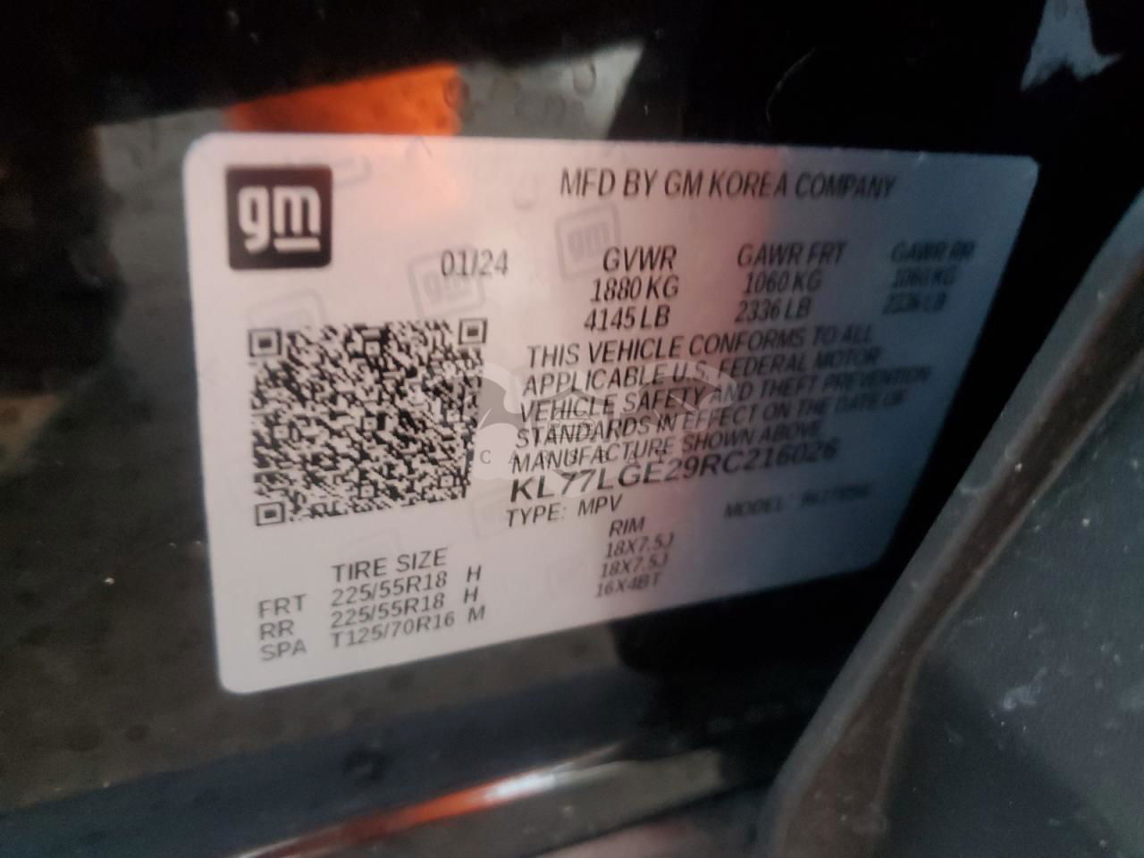 • VIN: KL77LGE29RC216026