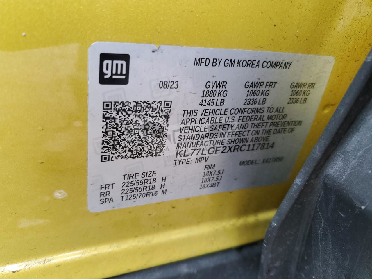 • VIN: KL77LGE2XRC117814