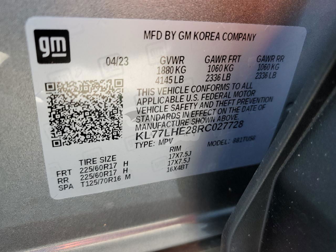 • VIN: KL77LHE28RC027728