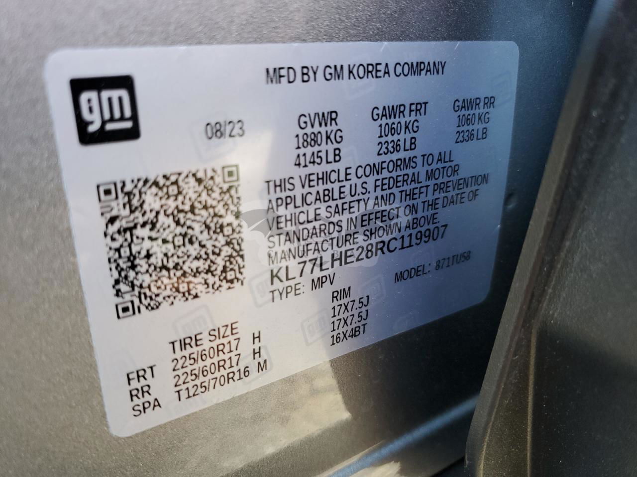 • VIN: KL77LHE28RC119907