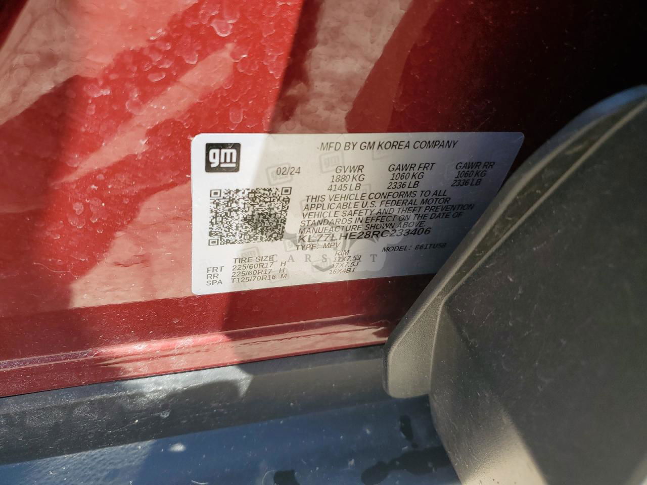 • VIN: KL77LHE28RC233406