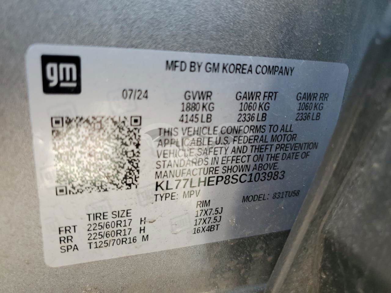 • VIN: KL77LHEP8SC103983