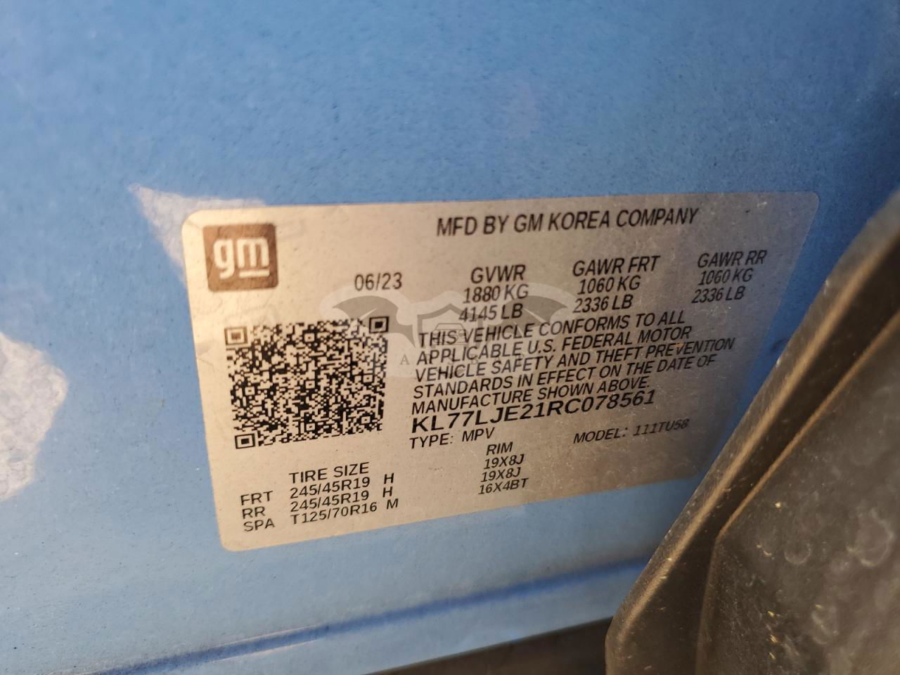 • VIN: KL77LJE21RC078561