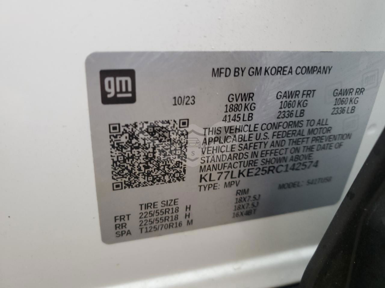 • VIN: KL77LKE25RC142574