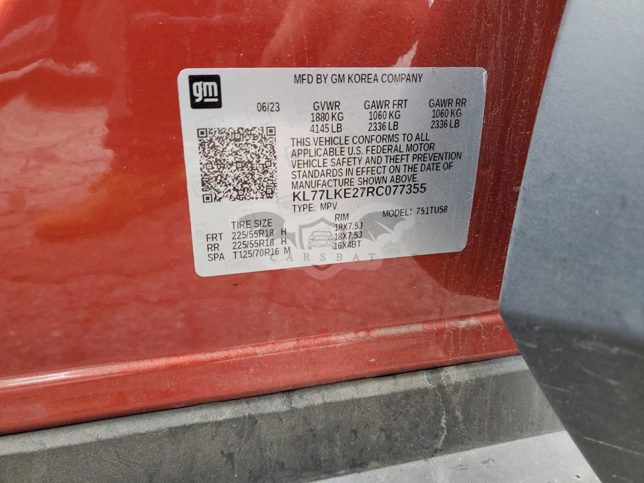 • VIN: KL77LKE27RC077355