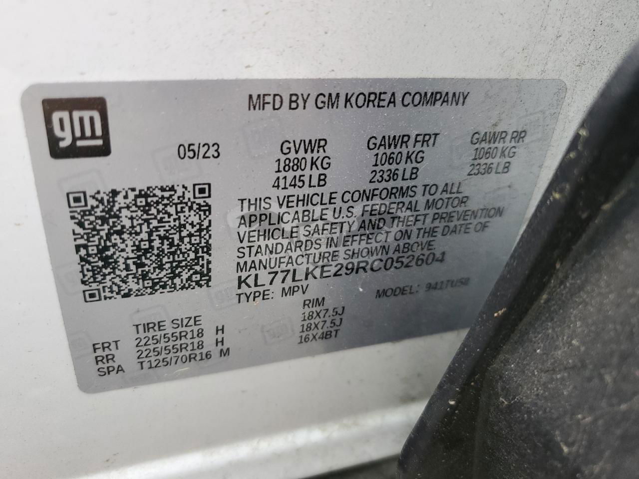 • VIN: KL77LKE29RC052604