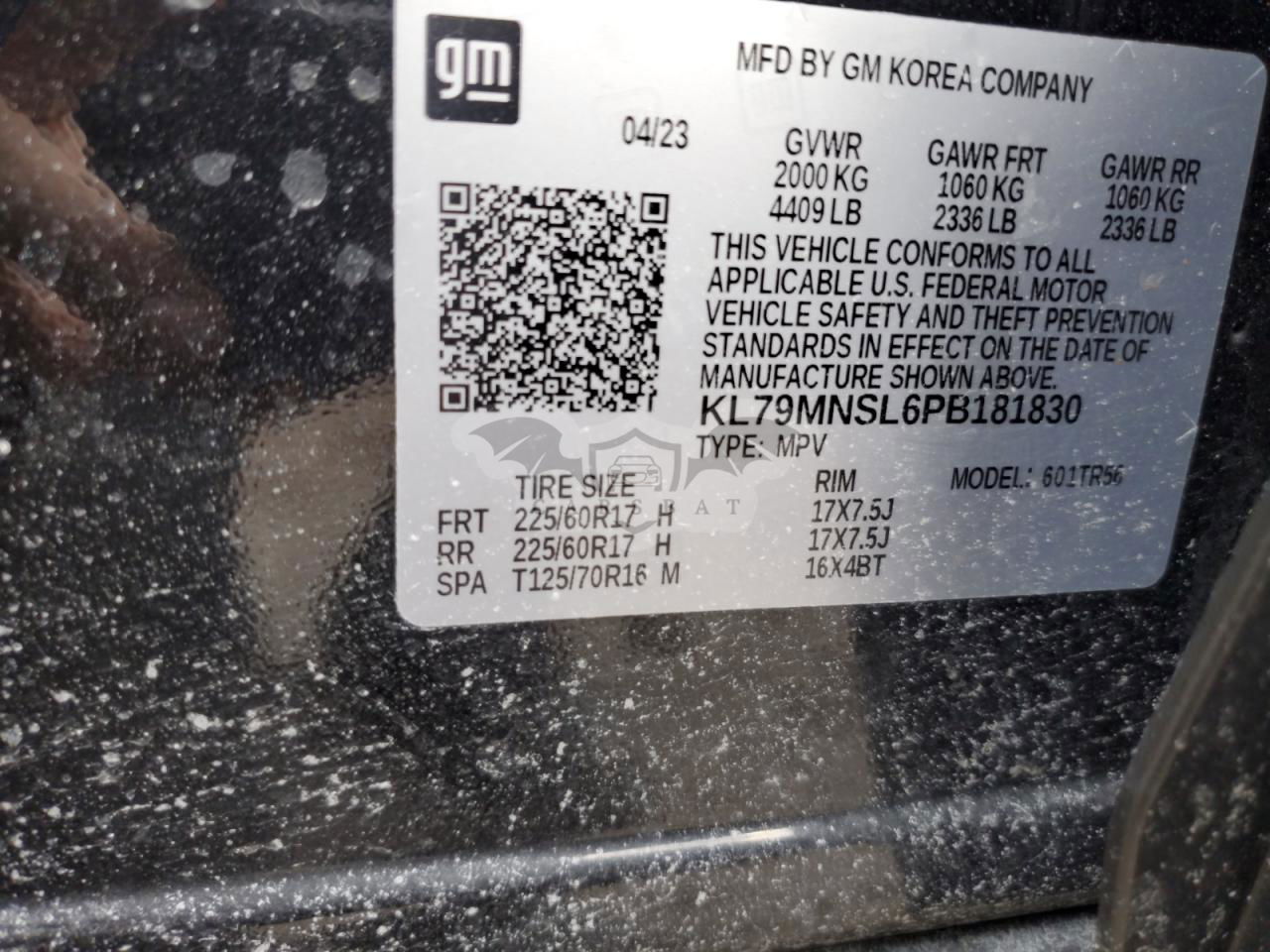 • VIN: KL79MNSL6PB181830
