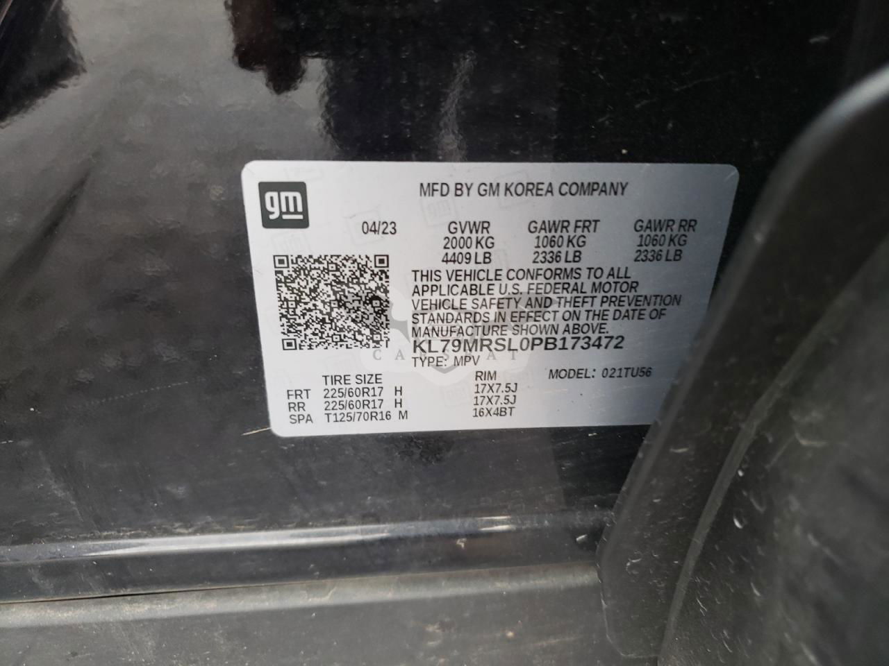 • VIN: KL79MRSL0PB173472