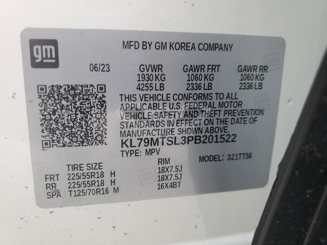• VIN: KL79MTSL3PB201522