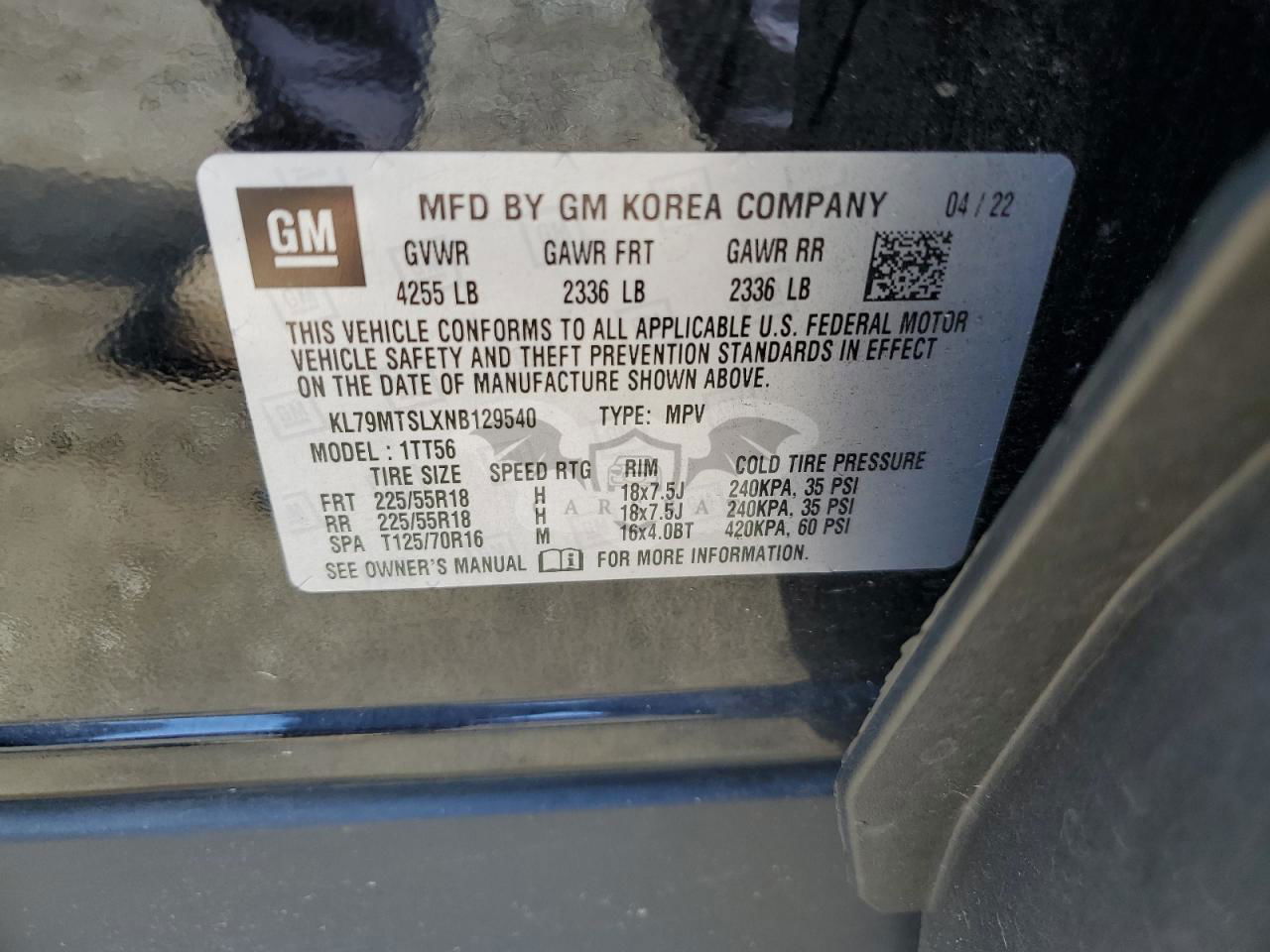 • VIN: KL79MTSLXNB129540