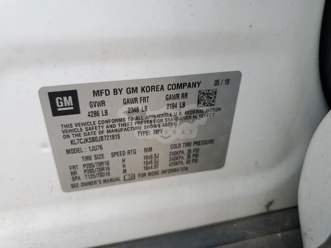 • VIN: KL7CJKSB0JB721815