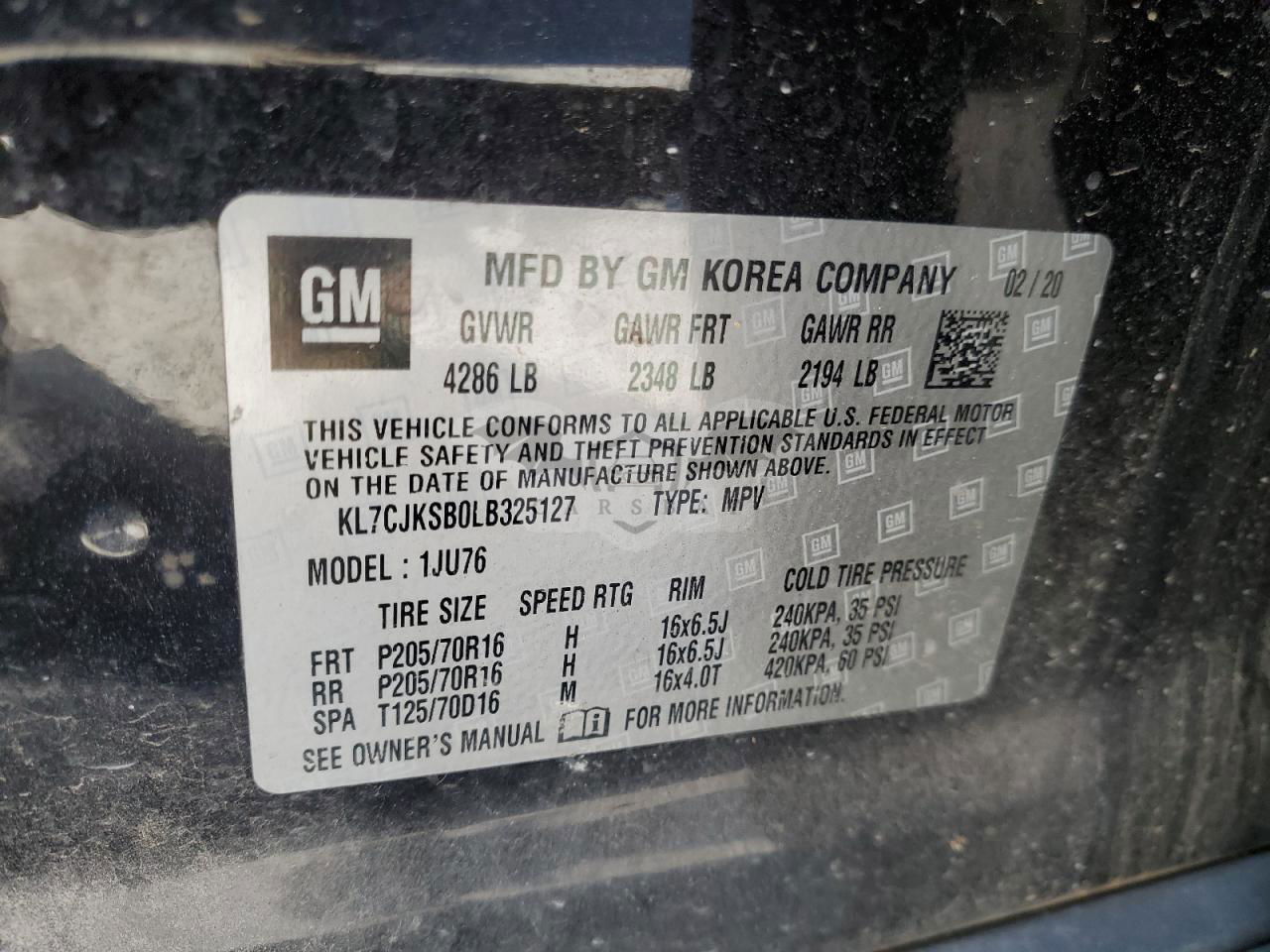 • VIN: KL7CJKSB0LB325127