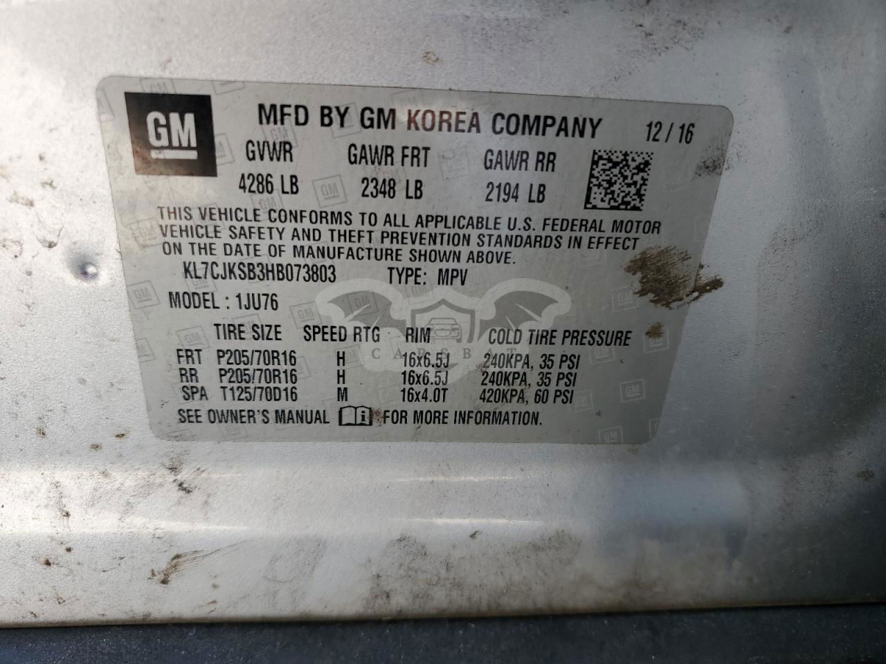 • VIN: KL7CJKSB3HB073803