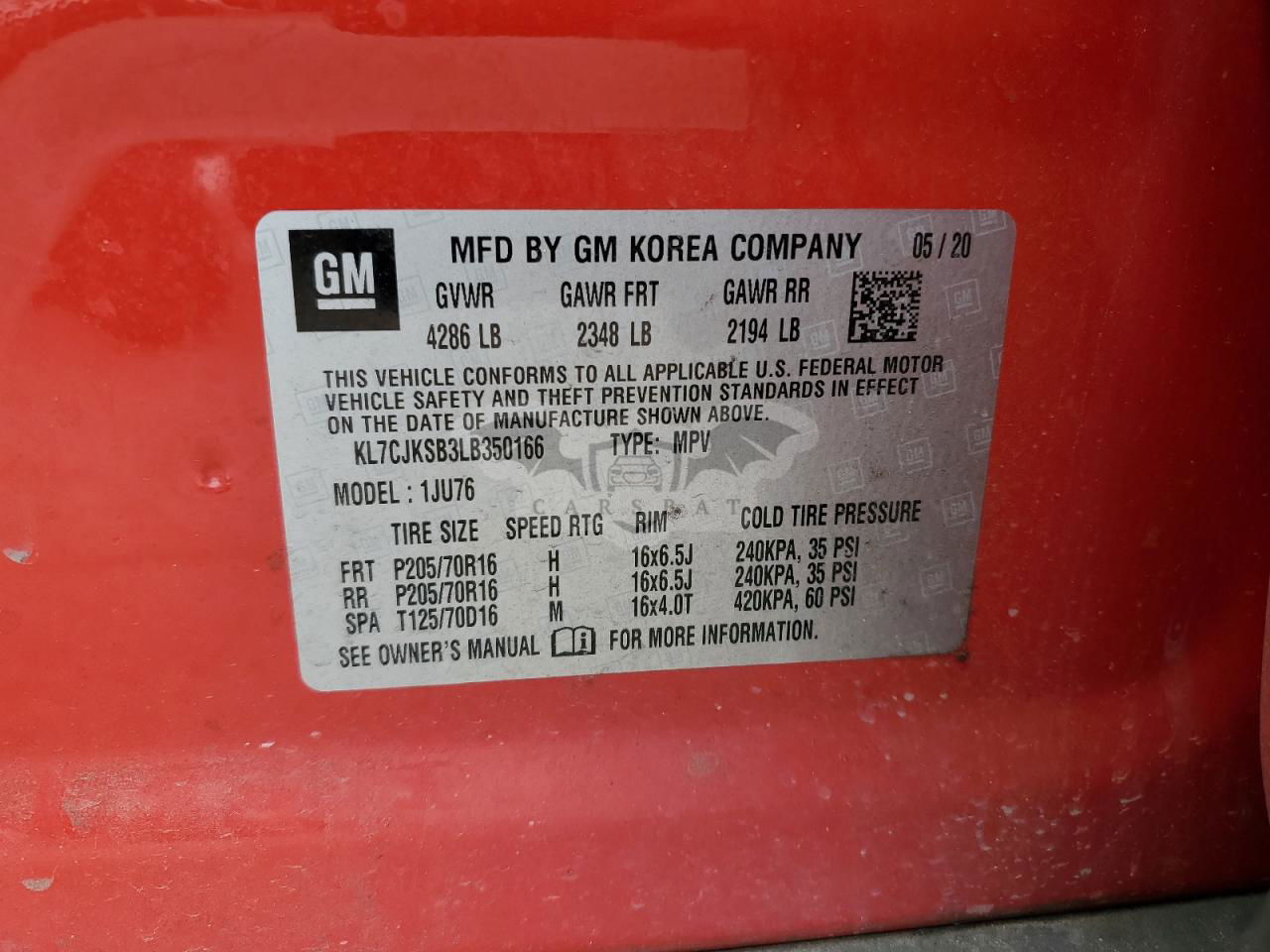 • VIN: KL7CJKSB3LB350166