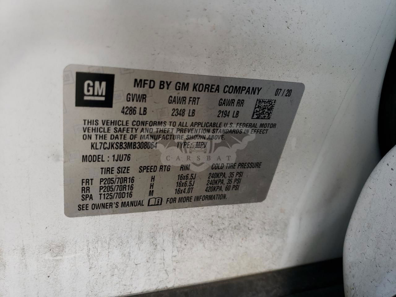 • VIN: KL7CJKSB3MB308064