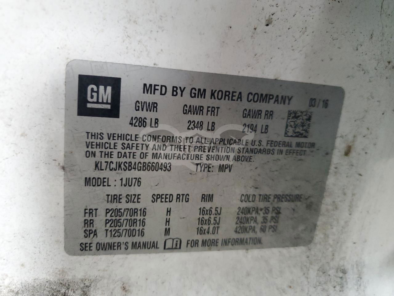• VIN: KL7CJKSB4GB660493