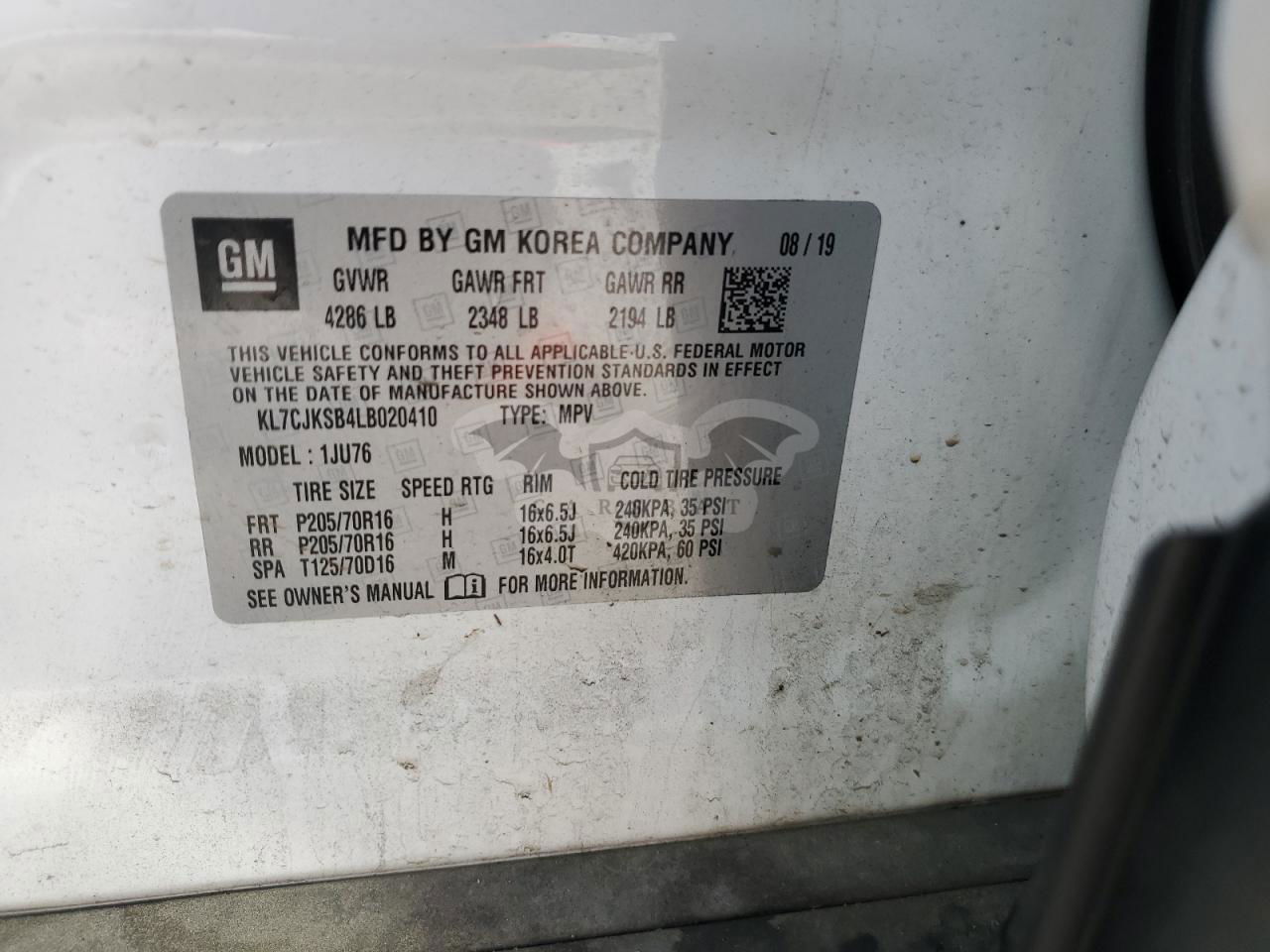 • VIN: KL7CJKSB4LB020410