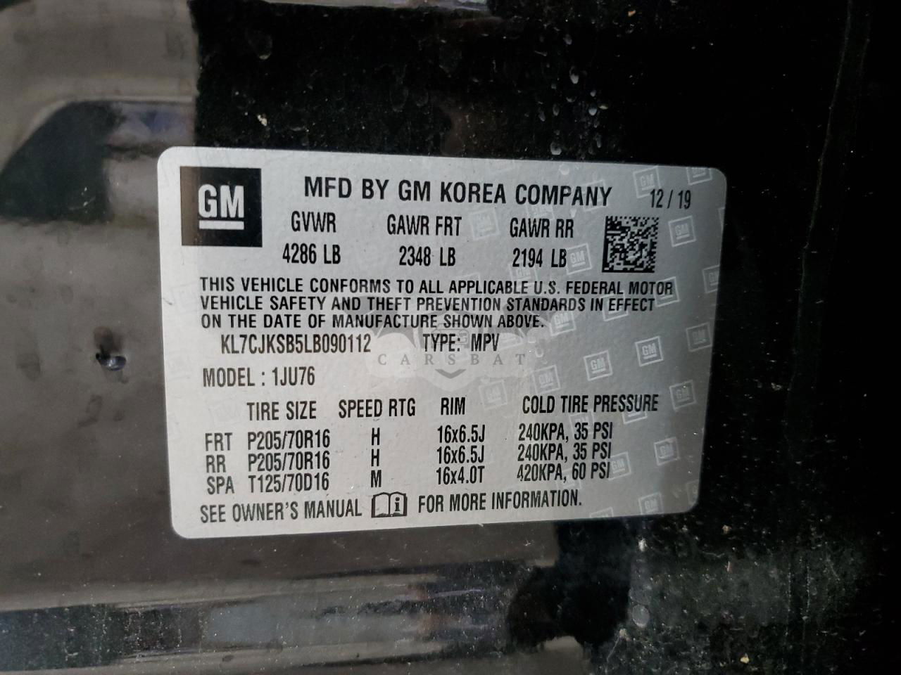 • VIN: KL7CJKSB5LB090112