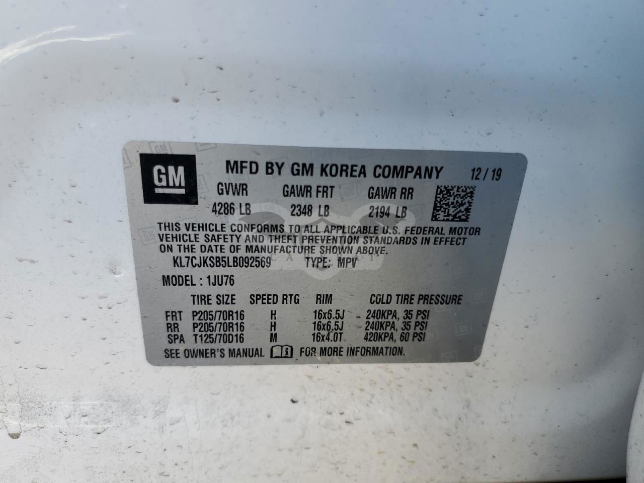 • VIN: KL7CJKSB5LB092569