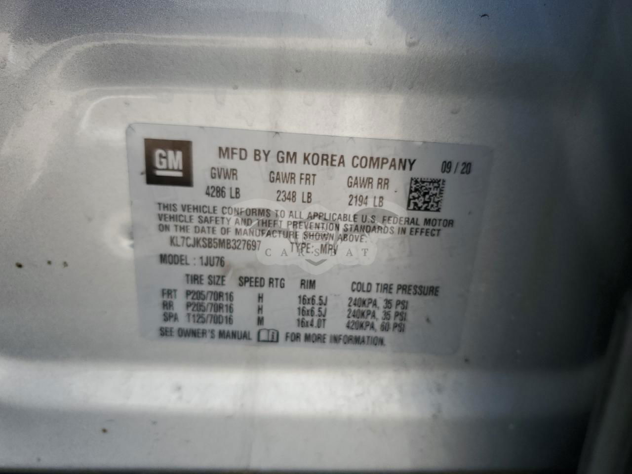 • VIN: KL7CJKSB5MB327697