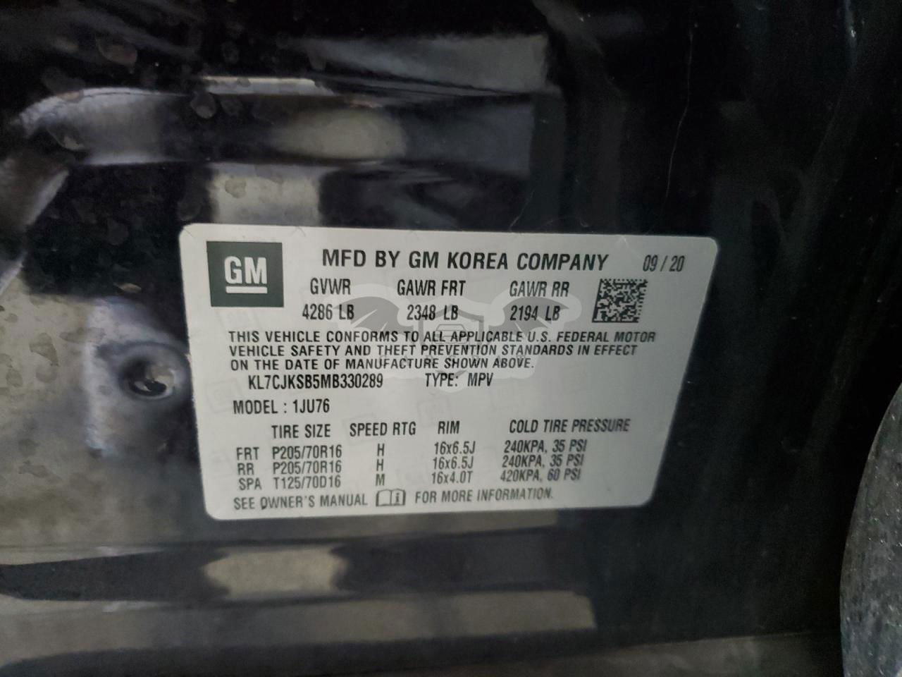 • VIN: KL7CJKSB5MB330289