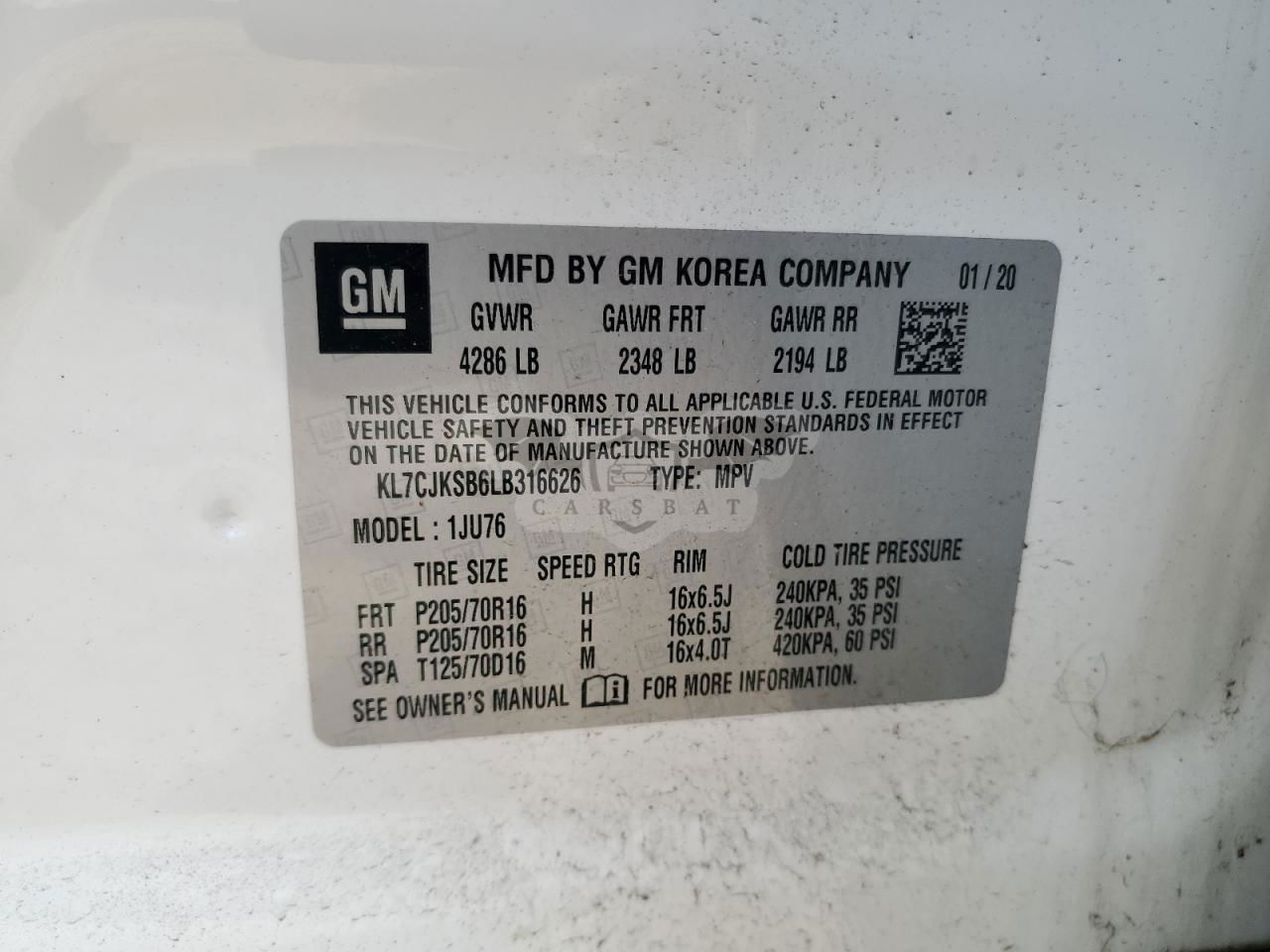 • VIN: KL7CJKSB6LB316626