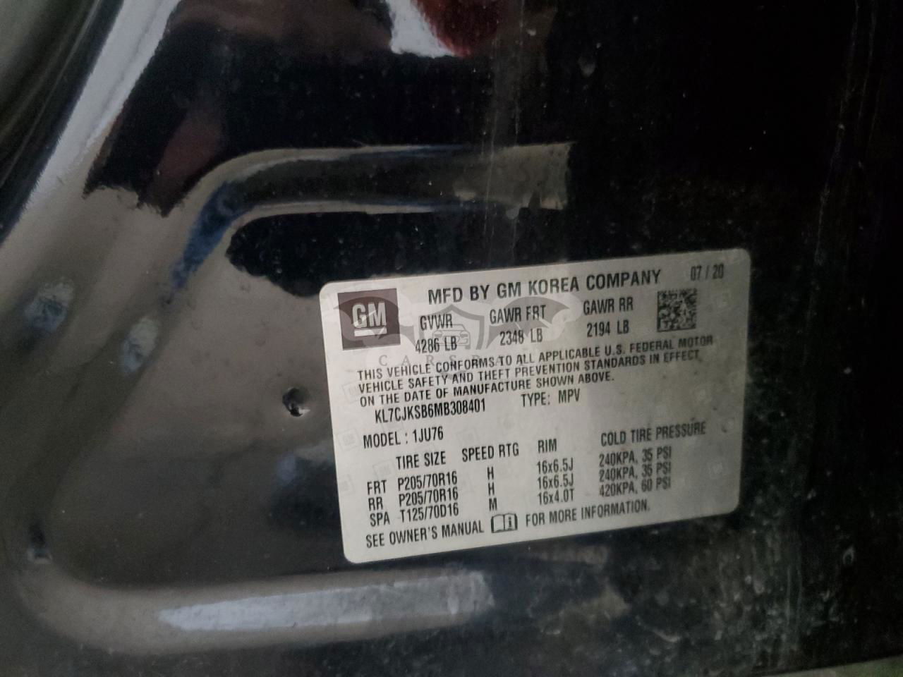 • VIN: KL7CJKSB6MB308401