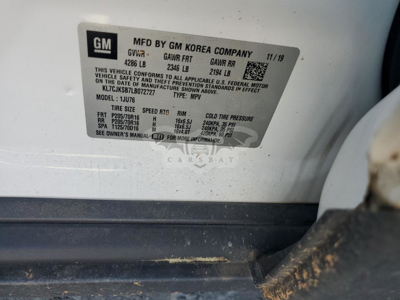 • VIN: KL7CJKSB7LB072727