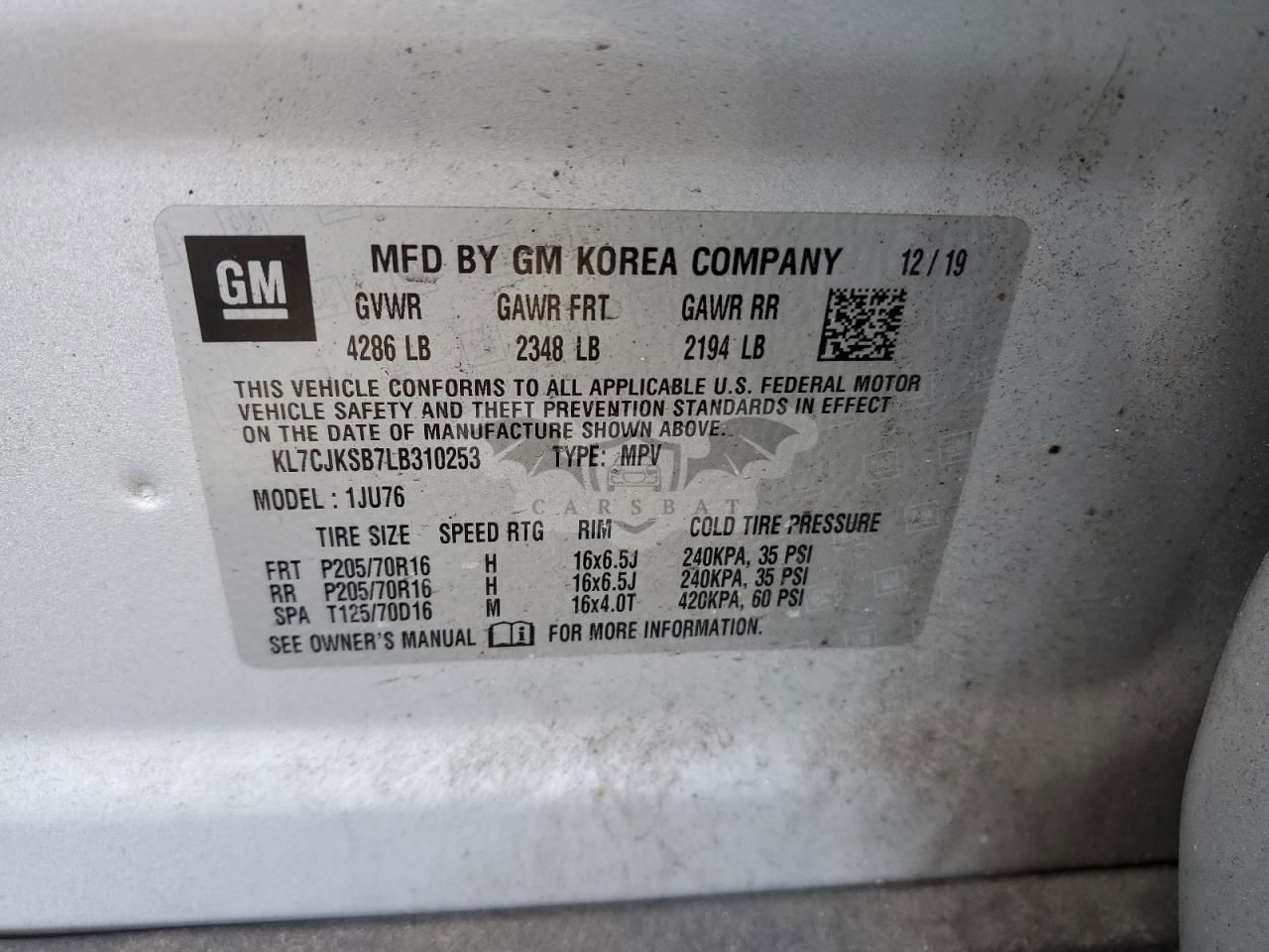 • VIN: KL7CJKSB7LB310253