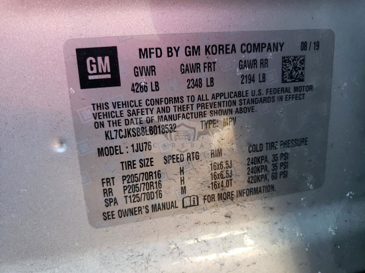 • VIN: KL7CJKSB8LB018532