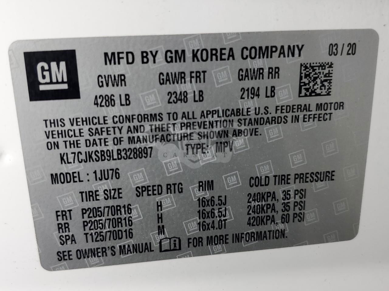• VIN: KL7CJKSB9LB328897