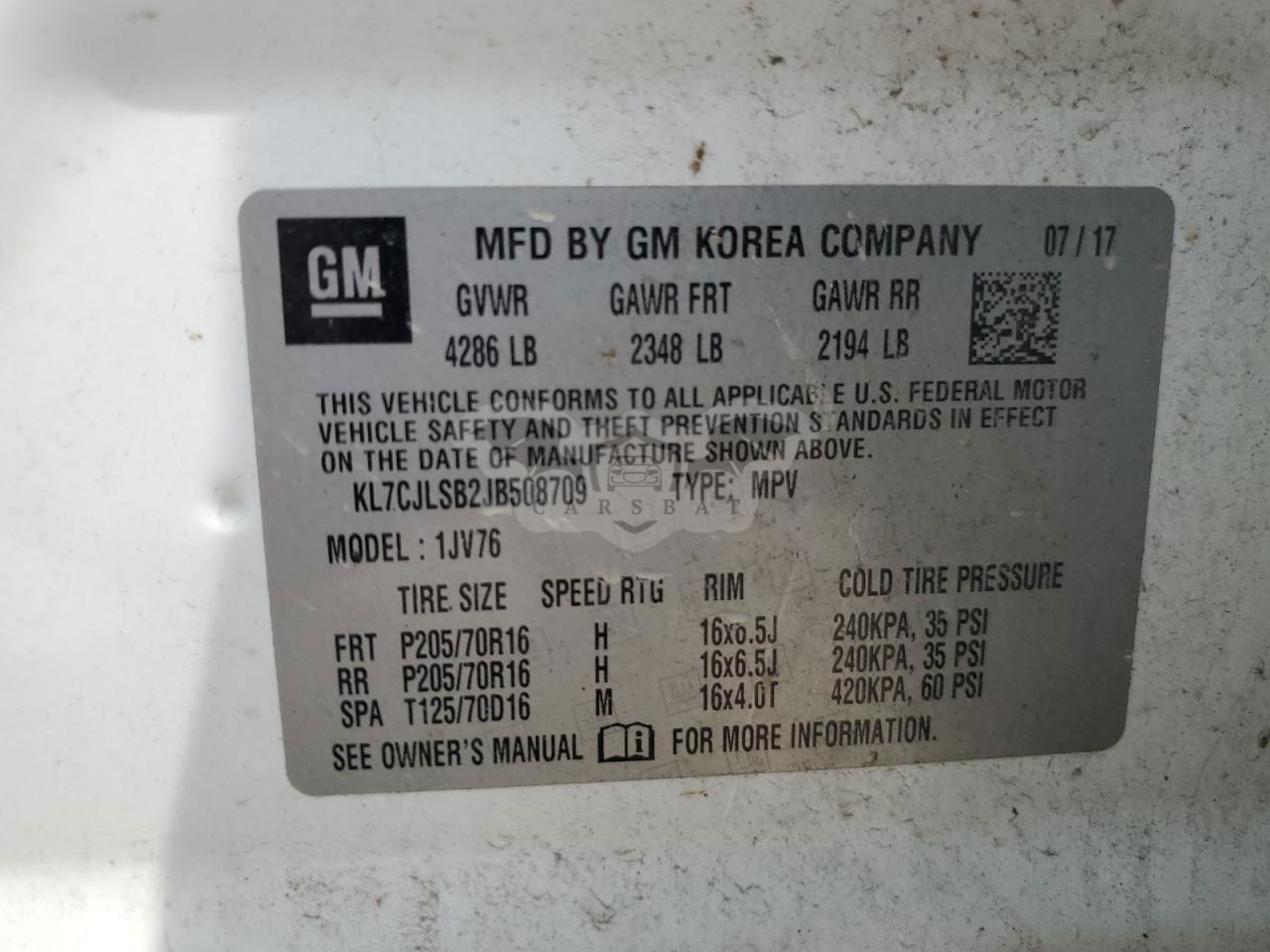 • VIN: KL7CJLSB2JB508709