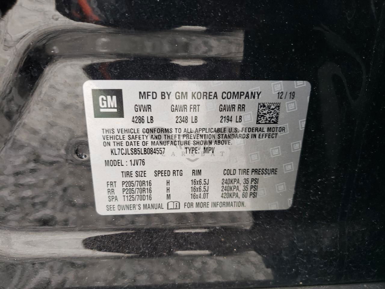 • VIN: KL7CJLSB5LB084557