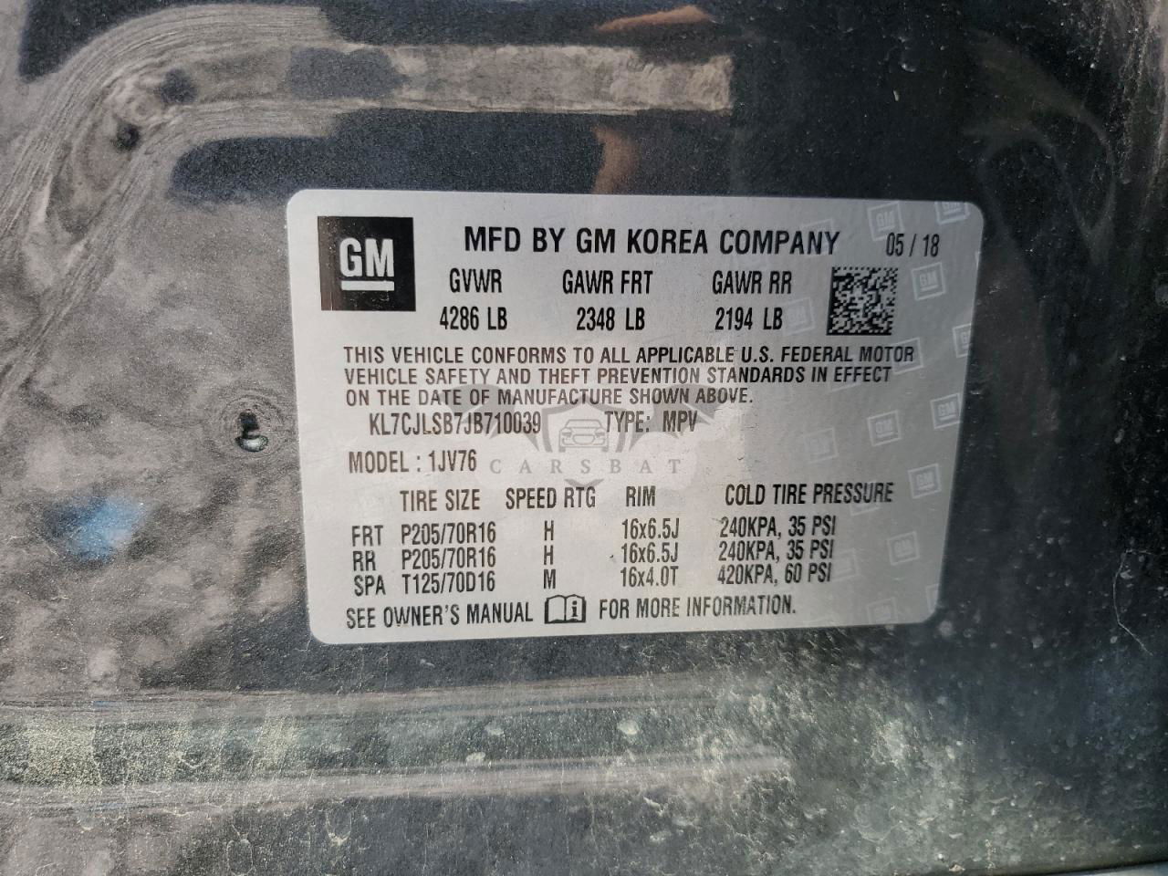 • VIN: KL7CJLSB7JB710039