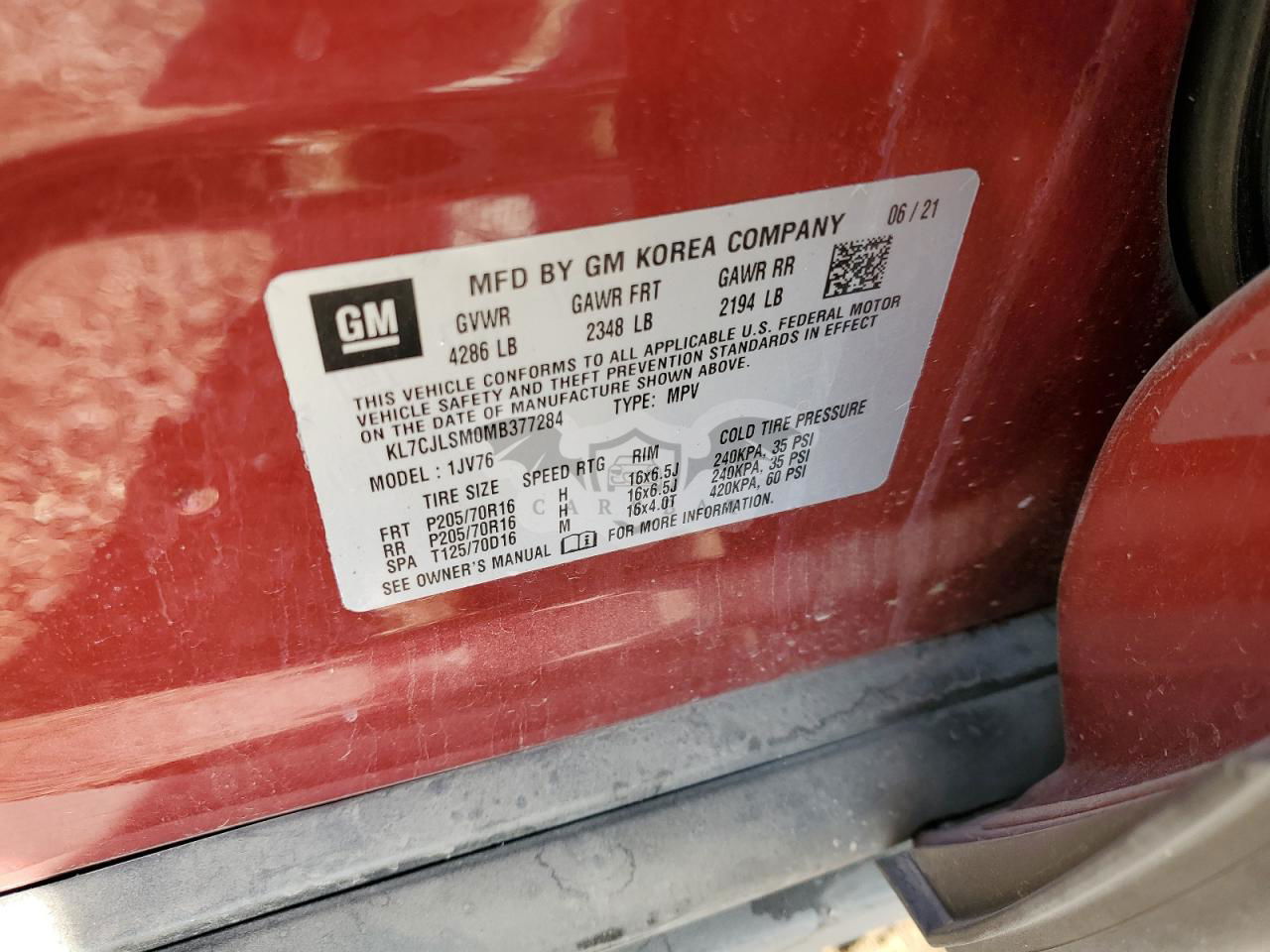• VIN: KL7CJLSM0MB377284