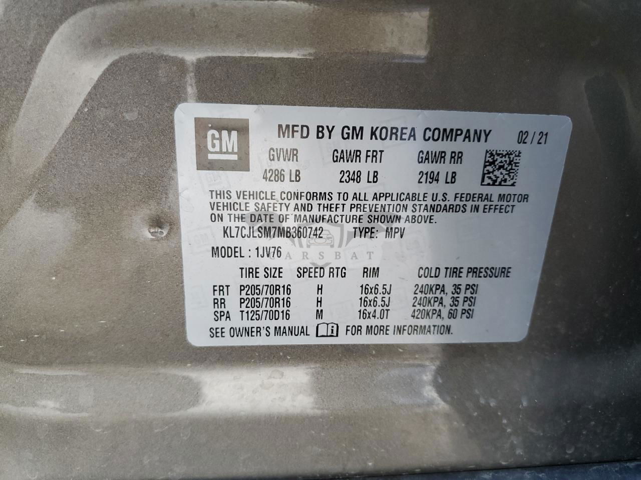 • VIN: KL7CJLSM7MB360742