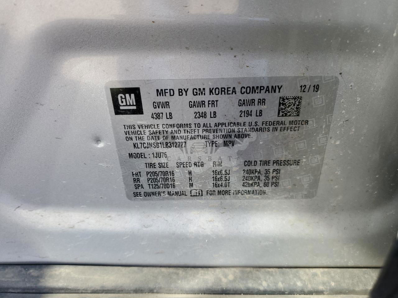• VIN: KL7CJNSB1LB312727