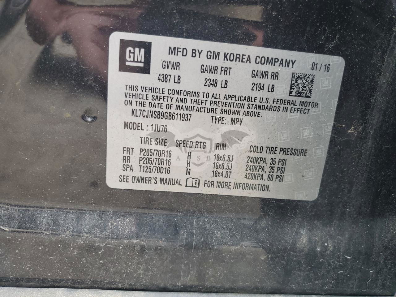 • VIN: KL7CJNSB9GB611937