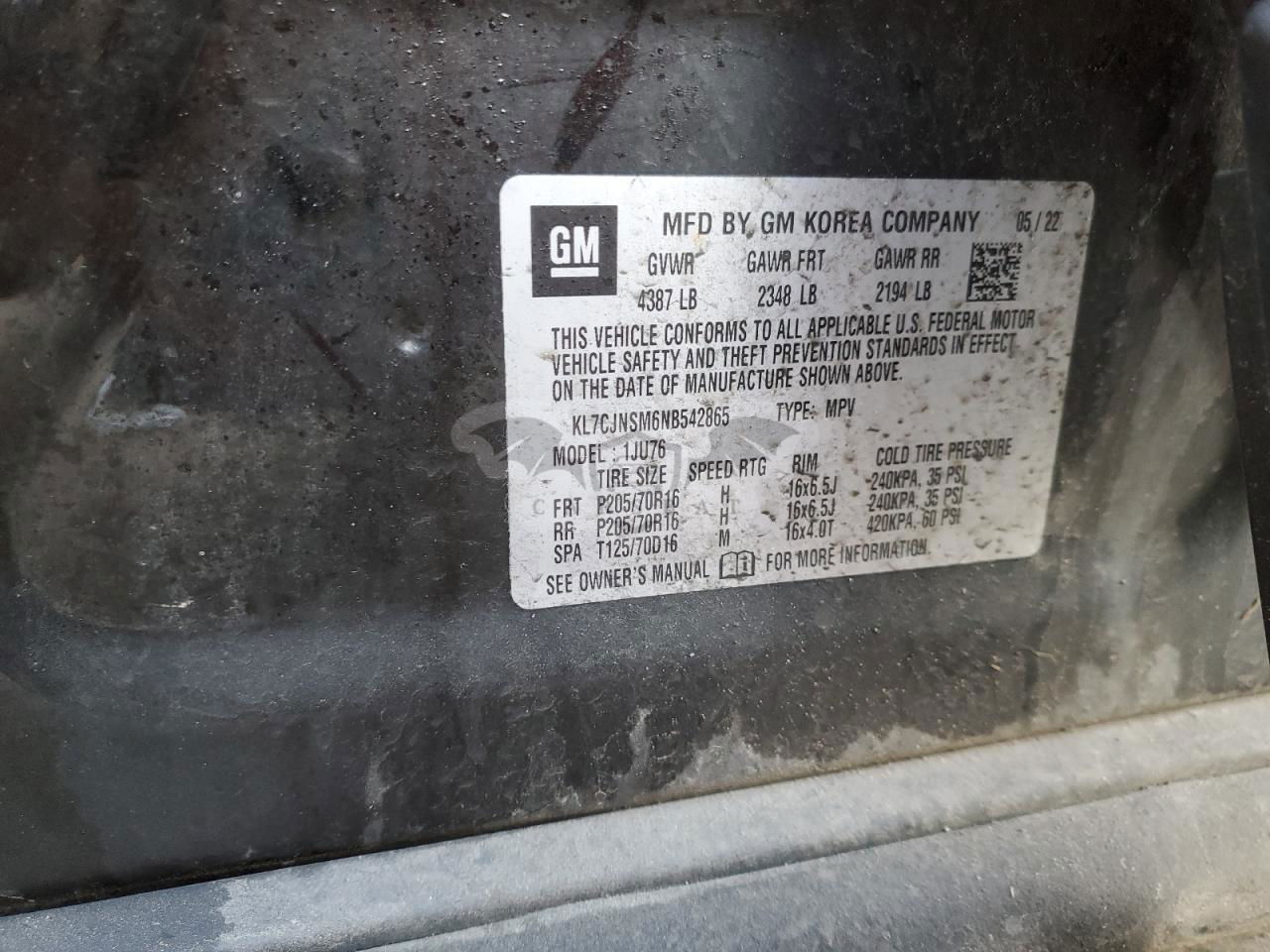 • VIN: KL7CJNSM6NB542865