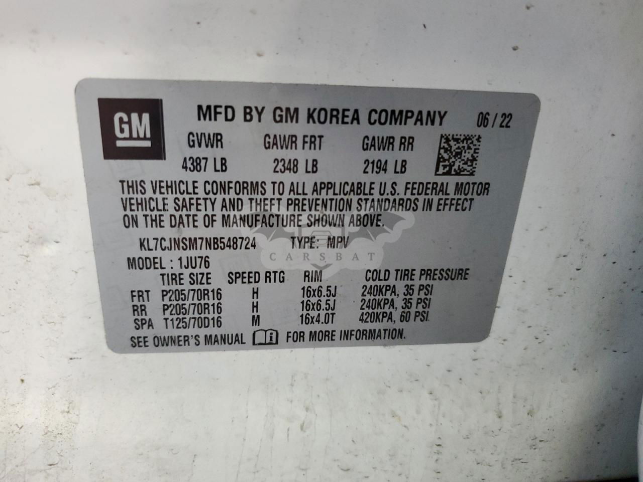 • VIN: KL7CJNSM7NB548724