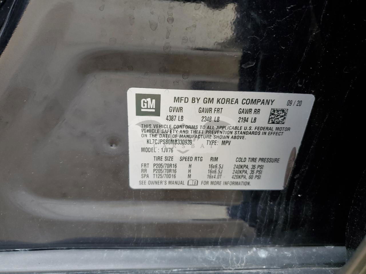• VIN: KL7CJPSB0MB330939