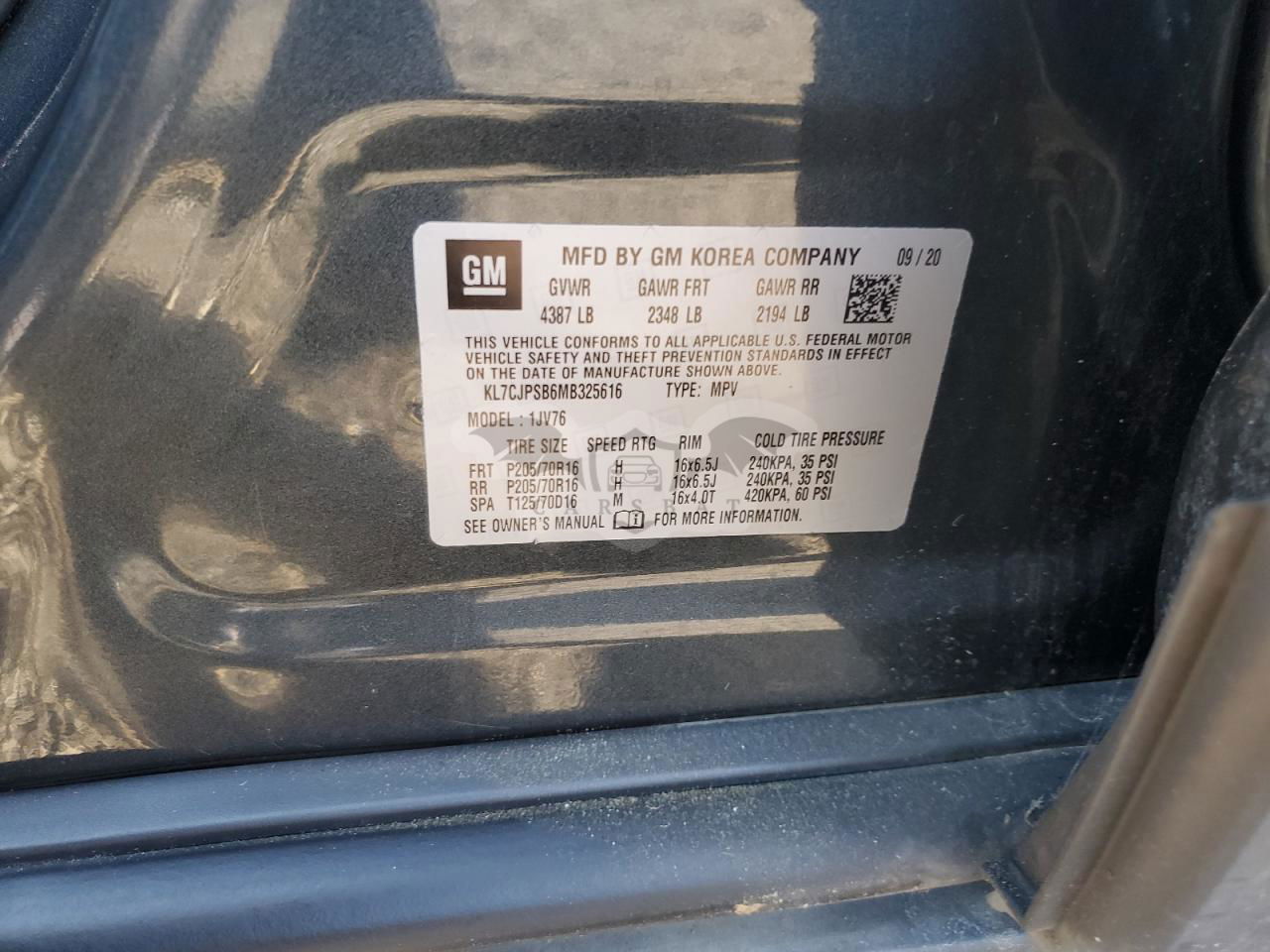 • VIN: KL7CJPSB6MB325616