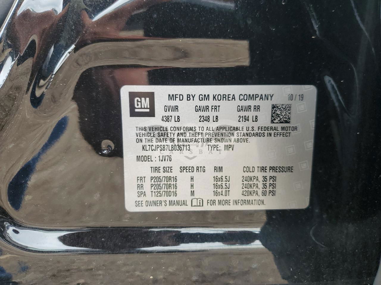 • VIN: KL7CJPSB7LB036713