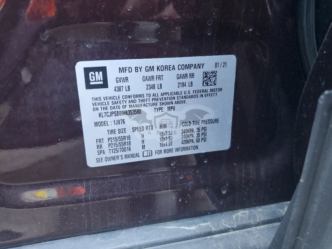 • VIN: KL7CJPSB8MB353580