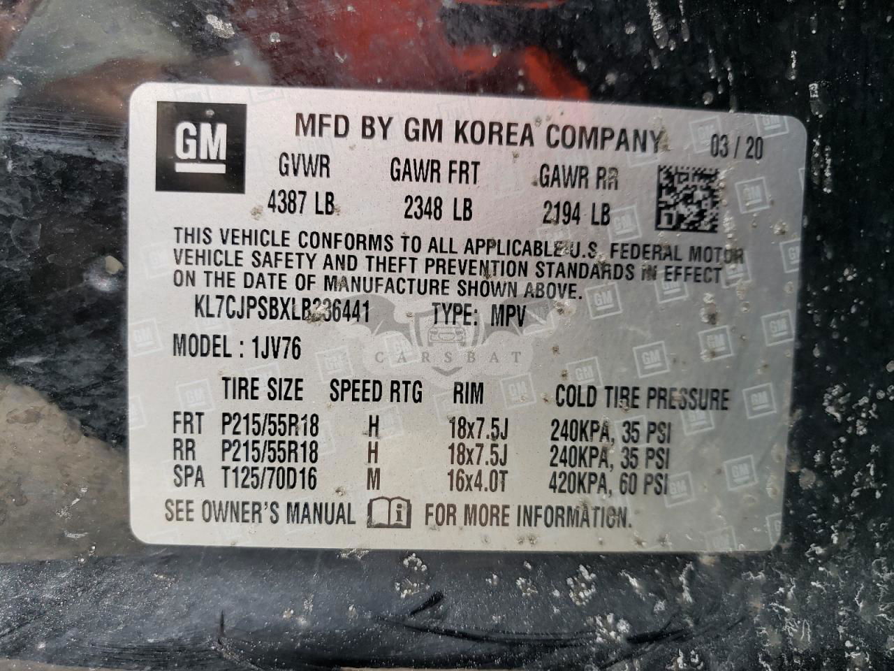 • VIN: KL7CJPSBXLB336441