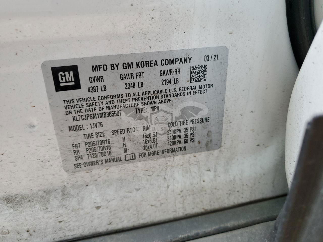 • VIN: KL7CJPSM1MB365507